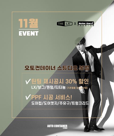 NEW FACE ![]() 내이름은 마칸😽 오토컨테이너 스튜디오 반려묘 이 귀여운 치즈냥이 누구냐 물어보신다면 오토컨테이너 스튜디오의 새식구라고 말씀드릴 수 있습니다 :) 한 달전 오토컨테이너를 집사로 간택한 아기고양이가 한마리 있었으니, 포르쉐 마칸 차량 아래서 처음 만났다 하여 이름이 '마칸'으로 지어졌답니다. 손바닥만 했던 작은 녀석이 어떻게 성장했는지 포스팅을 통해 자세히 확인해보세요! (심쿵주의) TINTING PREVIEW 11월 이벤트 썬팅 재시공 30% 할인 받자! EVENT 1 틴팅 재시공 받으시는 고객님들께 솔라가드 프리미엄 필름 (LX/보그/퀀텀/티타늄) 30% 할인을 적용해드립니다. EVENT 2 신차 전면 측후면 틴팅 시공 받아보시는 고객님들게 도어컵/도어엣지/주유구/트렁크리드 부분 PPF 서비스해드립니다. EVENT 3 오토컨테이너 스튜디오 홈페이지에 가입하셔서 1만원을 즉시 할인 받아보실 수 있는 쿠폰을 다운 받아보세요! HAPPY HALLOWEEN DAY! 할로윈 이벤트 10% 할인쿠폰 반짝 발급! 다운로드는 10/31 까지 쿠폰 사용은 12/31 까지 할로윈을 맞이해서 오토컨테이너에서 준비한 깜짝 선물! 10% 할인쿠폰을 받아보세요! 홈페이지가입 > 쿠폰다운로드 오컨드로우 응모하기 1등은 맞춤정장 제작! / 2등은 맞춤셔츠 증정! 오컨드로우 응모는 회원가입 후 응모폼 작성으로 진행됩니다. 이벤트 기간동안 회원가입 후 응모폼을 작성해주신 고객님들 중 무작위로 추첨하여 개별적으로 안내드립니다. 오토컨테이너 스튜디오 위치 오토컨테이너 스튜디오 autocontainer@naver.com 성남시 중원구 둔촌대로 52번길 8 수신거부 Unsubscribe |